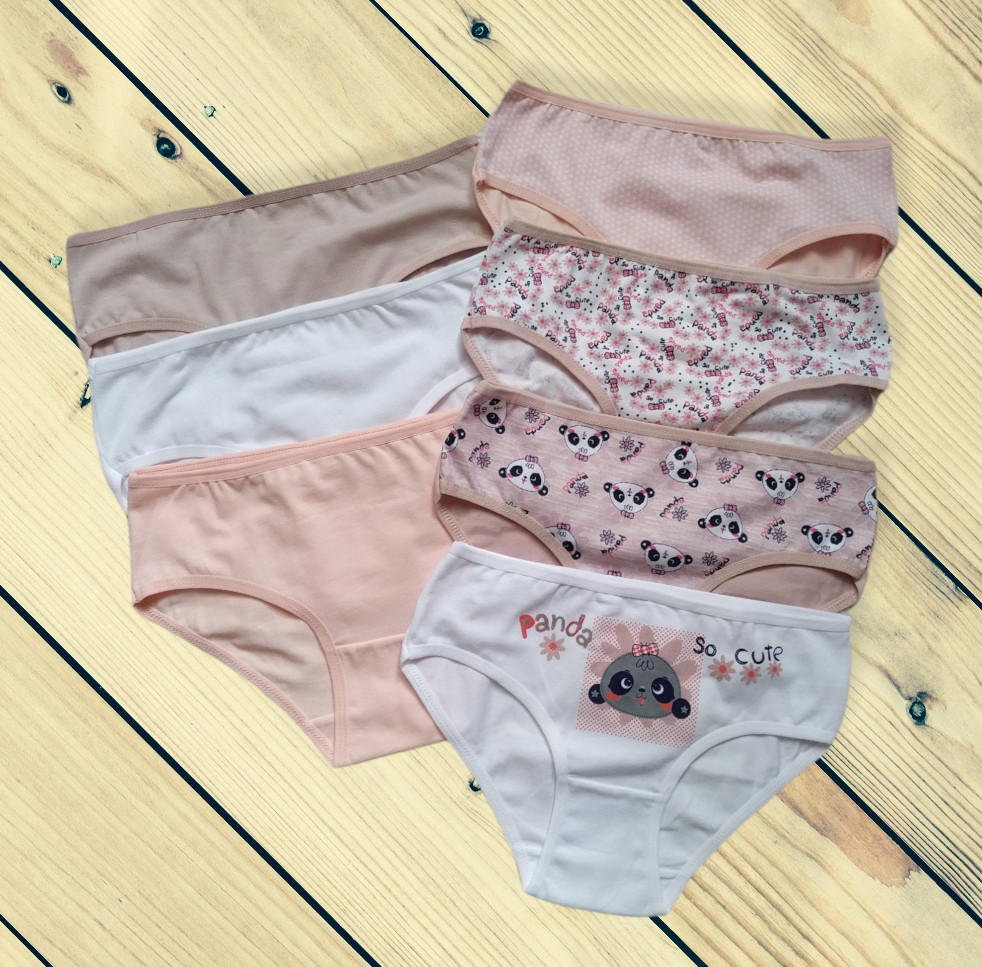 Набір трусиків для дівчинки. В упаковці 7 шт, різні забарвлення. Хороша середня посадка. Висока якість тканини. Бавовна 95%, еластан 5%